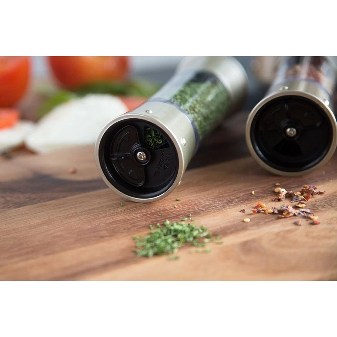 - Comprend 8 bouteilles d’épices, chacune contenant 3,5 oz. et mesure automatiquement 1/4 c. à chaque clic, secouez et versez!