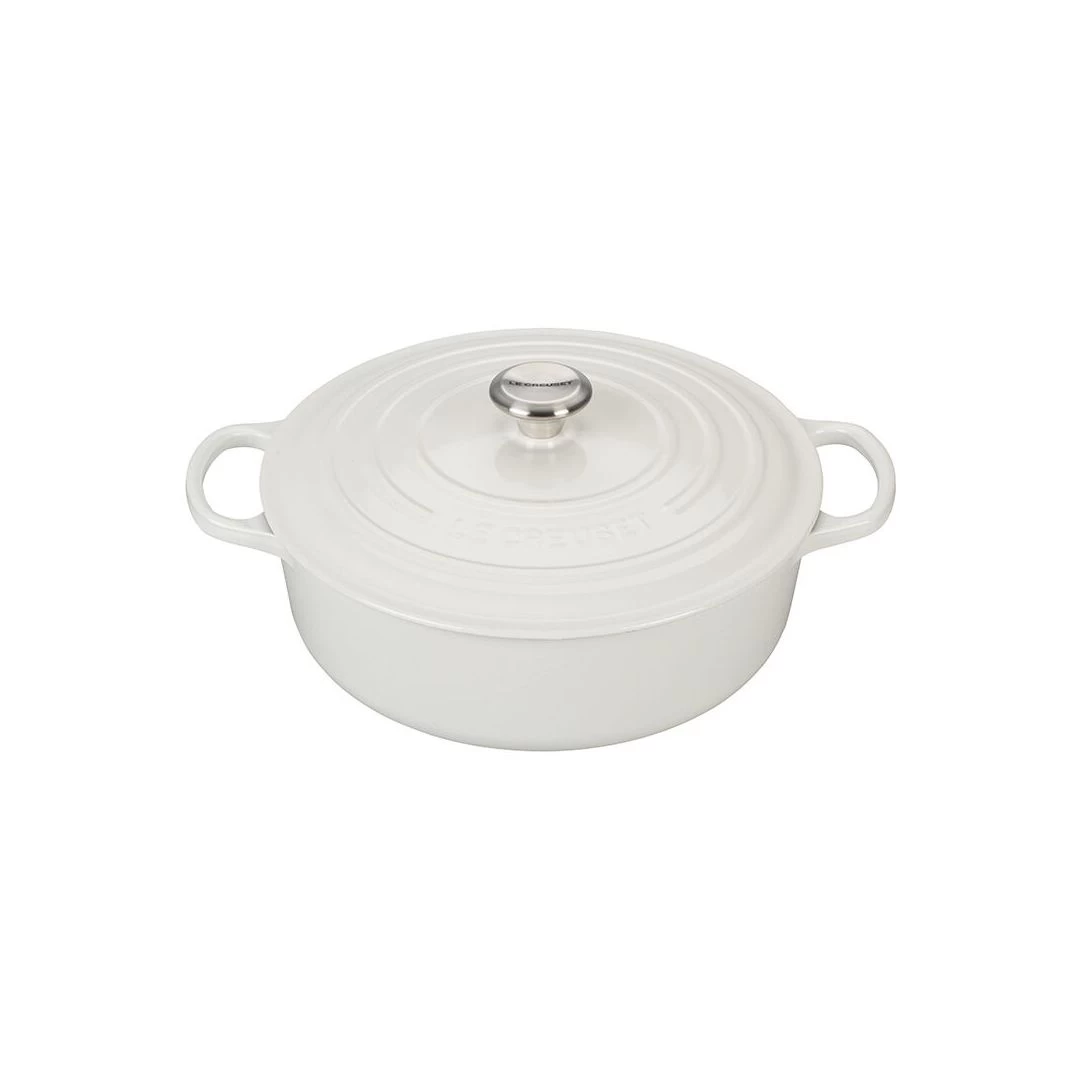 La cocotte ronde peu profonde crée un environnement parfait pour la cuisson lente, les mijotés, la cuisson et four et le rôtissage en alliant la grande surface de cuisson de la braisière et les parois élevées de la cocotte classique. Sa forme large et peu profonde permet de saisir et de faire dorer les viandes facilement, avant de les laisser cuire lentement.